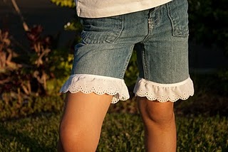 Add lace to the bottom of cut-off jeans!!