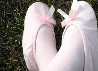 Made from cutting the top part off of a toilet paper roll, covering it in pink felt, and tying a stretchy band to each side.