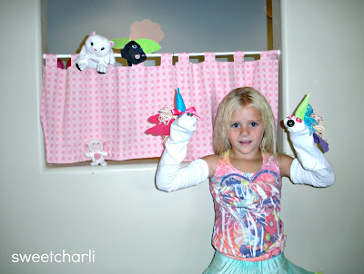 The other day Charli’s cousin Lily was over at our house and it was a little rainy outside.  We decided to have a puppet show.  I had some spare socks lying around and a bunch of felt and crap.  I let the girls make their own puppets, they both chose to make unicorn puppets!  I made a bunny.